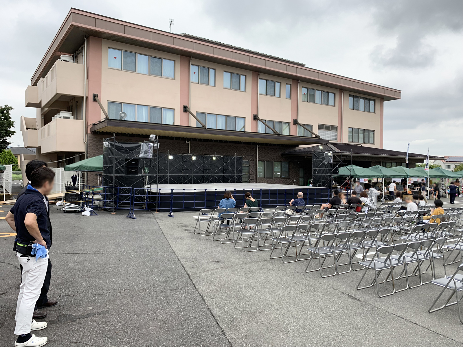 学校の文化祭でトラス屋根のついたステージを設営していただきました。設営場所はグラウンドではなく駐車場となりました。開催当日は、大勢のギャラリーが集まって非常に面白いイベントとなりました。天候にも恵まれ、大成功に終わりました。来年もお願いしたいです!